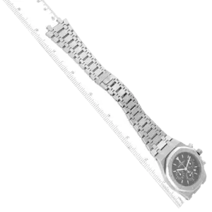Dial: Black dial with tapisserie waffle pattern. White luminous hands and baton indexes. Three chronograph subdials to measure minutes, hours, and running seconds. Date window between 4 and 5 o’clock.