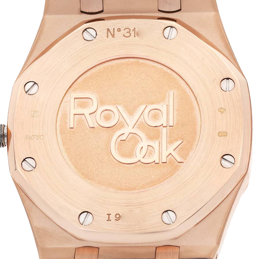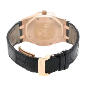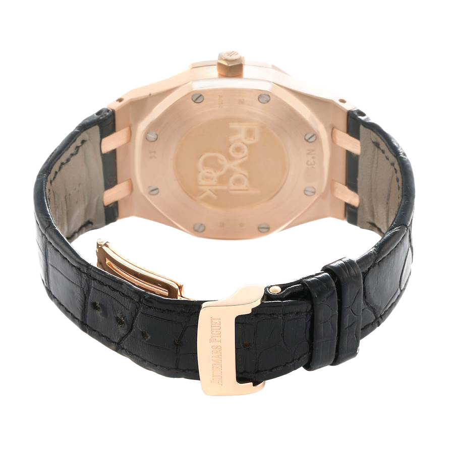 Case: 18k rose gold octagonal case 39.0 mm in diameter. Audemars Piguet logo on the 18k rose gold crown.