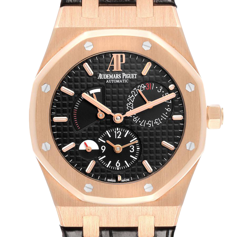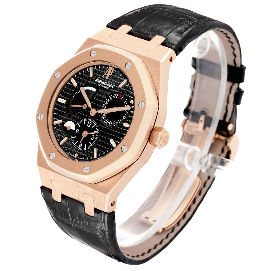 Model Name: Audemars Piguet Royal Oak Dual Time Rose Gold Mens Watch 26120OR