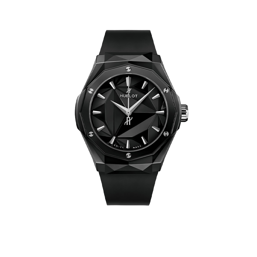 This timepiece features a 40mm ceramic case paired with a high quality rubber strap. It showcases a distinctive black dial and is powered by a precise automatic winding movement. The watch is designed with a water resistance of up to 50m.