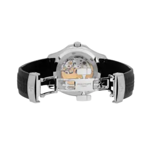 The luminescent applied Arabic numerals and hands ensure excellent readability, while the date display at 3 o’clock offers practical functionality. Paired with a durable black composite strap, this selfwinding timepiece is designed for active lifestyles without compromising elegance. As one of the most sought-after models in the Aquanaut collection, the 5167A-001 is a staple for collectors who appreciate its unique blend of innovation, craftsmanship, and understated luxury.