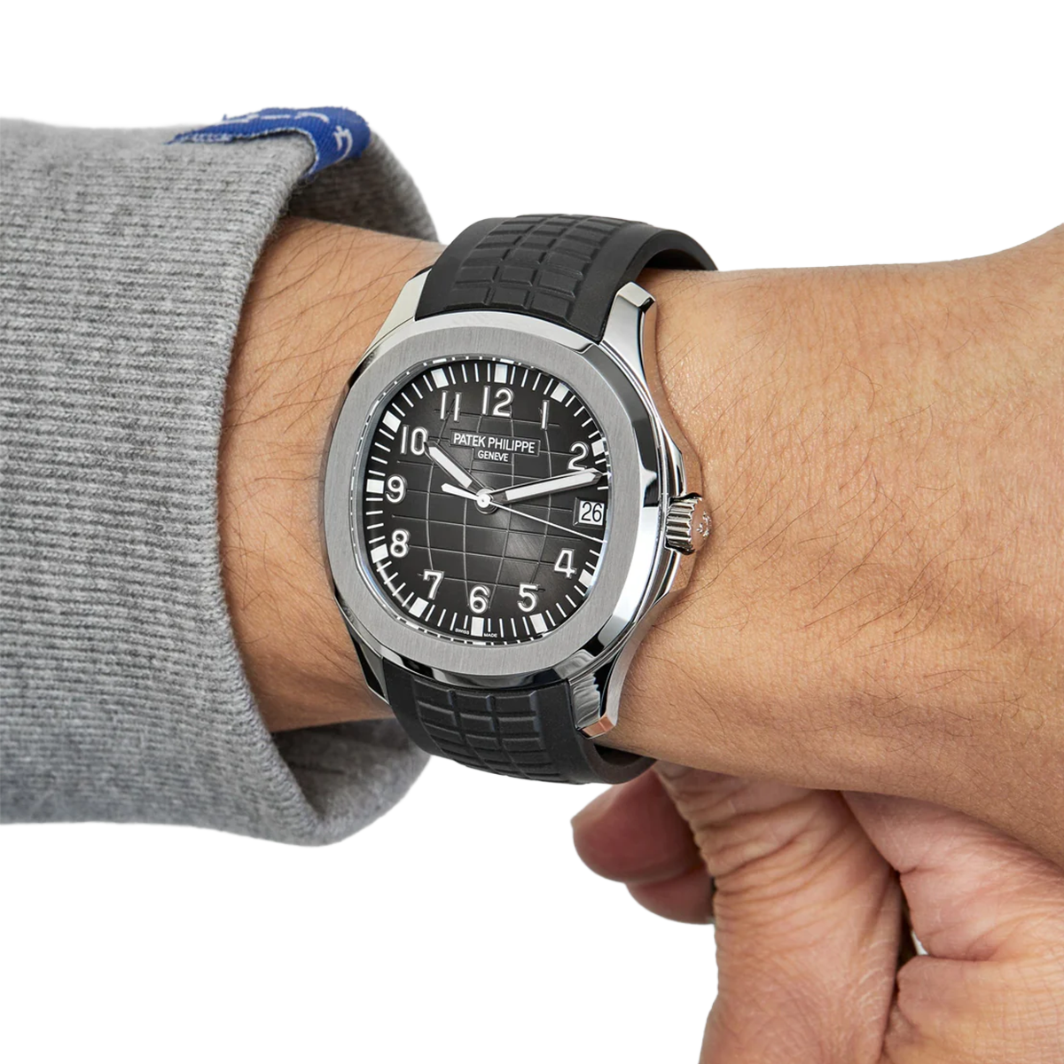 The Patek Philippe Aquanaut 5167A-001 is a contemporary icon, celebrated for its sporty yet sophisticated design. Crafted in stainless steel, the 40mm case is sleek and versatile, making it ideal for both casual and formal occasions. The black embossed dial, featuring the signature checkerboard pattern, adds depth and texture while providing a bold, modern aesthetic.