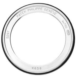 Bezel: 18k white gold original Patek Philippe factory diamond bezel.