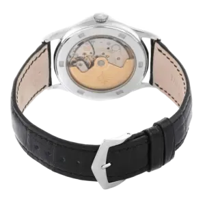 Case: 18k white gold round case 38.0 mm in diameter. Downturned lugs. Transparent exhibition sapphire crystal case back. Patek Philippe logo on the crown.