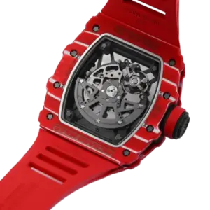 The Richard Mille RM35-02 ref: RM35-02 Red Carbon TPT features a 45mm case made from Carbon TPT, known for its lightweight and durable properties. This model, introduced in 2016, showcases a transparent skeleton dial that reveals the intricate workings of the automatic winding RMAL1 movement. The design emphasizes both functionality and aesthetics, making it a notable piece in the collection.