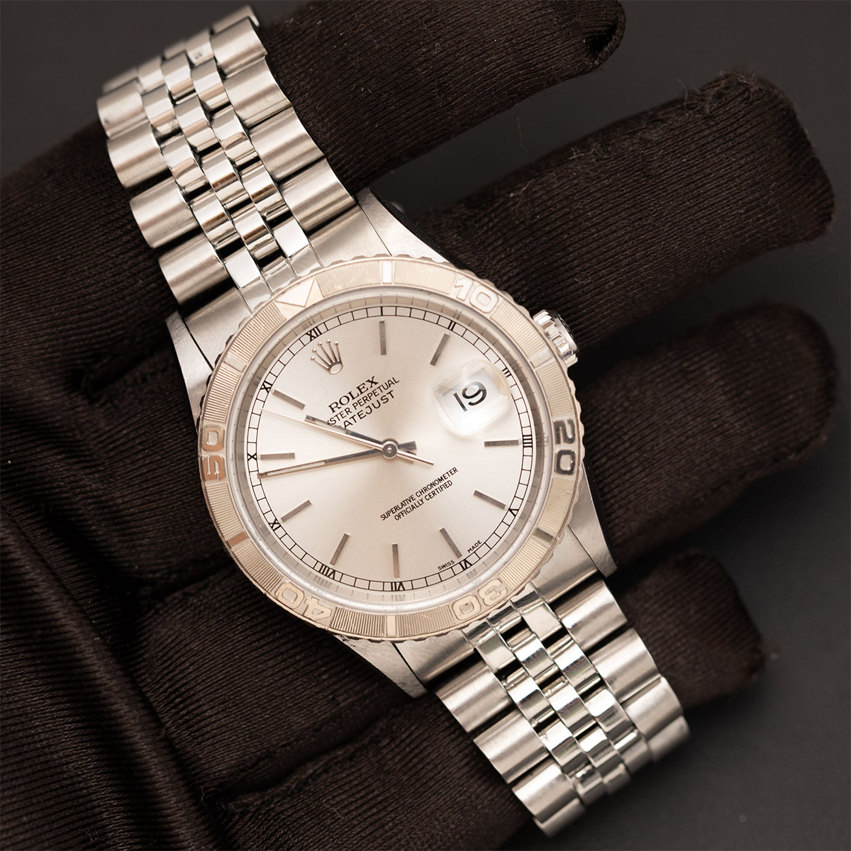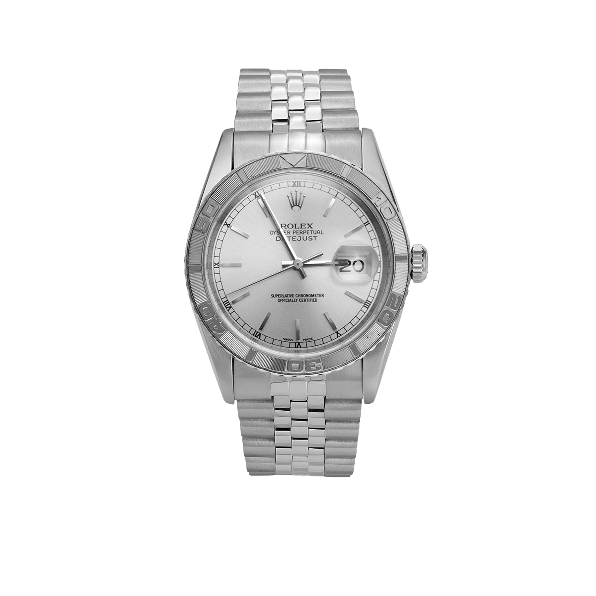 Here’s a Datejust Rolex Watch. From our Watches Collection, this Original 36mm Silver Index Dial Turn-O-Graph Bezel Datejust Rolex features Stainless Steel Case and Jubilee bracelet.