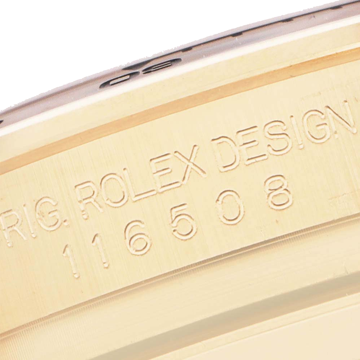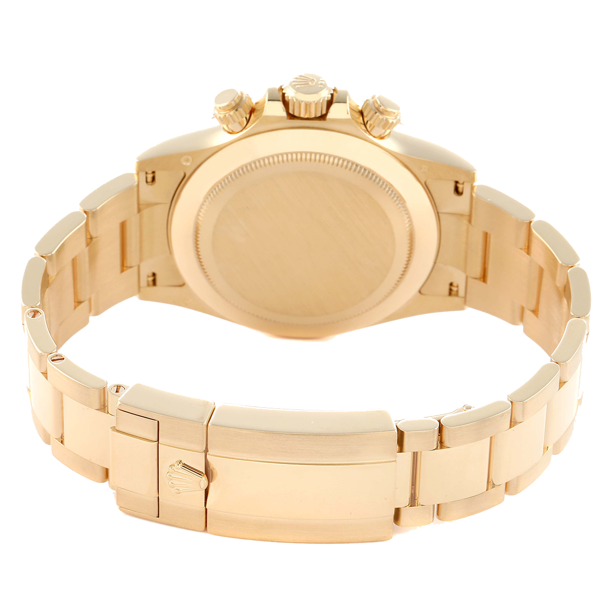 Case: 18K yellow gold oyster case 40.0 mm in diameter. Screwed-down case back, buttons, and crown. Triplock winding crown protected by the crown guard. Rolex logo on the 18k yellow gold crown.